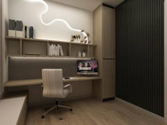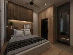 A refined Japandi modern home crafted with the perfect balance of natural textures and contemporary aesthetics. Warm wood grains, tactile surfaces, and understated lighting curate an atmosphere of quiet luxury. The spatial planning emphasizes comfort and functionality, while bespoke carpentry elements highlight craftsmanship and attention to detail. The overall result is a sophisticated yet serene living sanctuary.